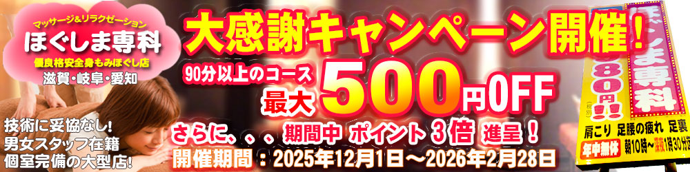 『ほぐしま専科 栗東出庭店』では、お客様の財布に優しい価格設定で、ご満足いただけるサービスを提供しております。「全身もみほぐし」「足裏もみほぐし」「全身・足裏ハーフ」と3種類のコースから、お客様のニーズに答える為、時間設定を細かく提供しています。